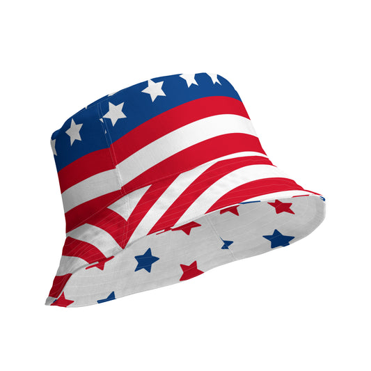 Reversible bucket hat, USA, Flag, all-over print, fasion style, gift, birthday, world cup